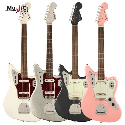 กีต้าร์ไฟฟ้า Squier FSR Classic Vibe '60s Jaguar รุ่นลิมิตเต็ด มาพร้อมกับโลโก้ในสไตล์ปี 1960 ฮาร์ดแวร์นิ๊กเกิ้ลที่งดงาม และคอกีต้าร์ที่เคลือบสีในแบบวินเทจเพื่อกลิ่นอายในยุคสมัยนั้นๆ อย่างแท้จริง