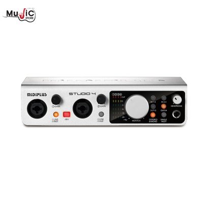 Midiplus Studio 4 ออดิโอ อินเตอร์เฟส ขนาด 4 in/4 out แบบ Combo Input XLR/Instrument มาพร้อมช่อง Midi in/out ความละเอียด 24 Bit/192 kHz มาพร้อมแผงไฟ LED บอกสถานะของ Gain Input สัญญาณเข้าอย่างละเอียด สามารถใช้ได้ทั้ง Mac และ Windows แถมฟรีโปรแกรมบันทึกเสียง Bitwig 8-Track