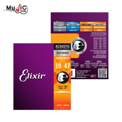 สายกีต้าร์โปร่ง Elixir 11002 80/20 Bronze Nanoweb Extra Light .010-.047