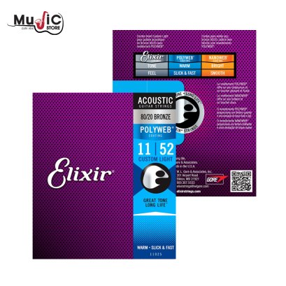 สายกีต้าร์โปร่ง Elixir 11025 Polyweb 80/20 Bronze Custom Light .011-.052