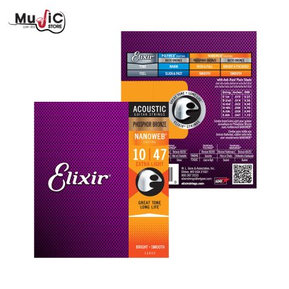 สายกีต้าร์โปร่ง Elixir 16002 Phosphor Bronze Nanoweb Extra Light .010-.047