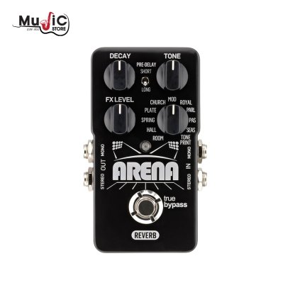 Arena Reverb is a customized take on the successful TC Electronic Hall of Fame Reverb. This pedal features four exclusive Toneprints that were custom-modeled after classic reverbs, including TC’s Cathedral, Hall, Room and Spring Reverbs.