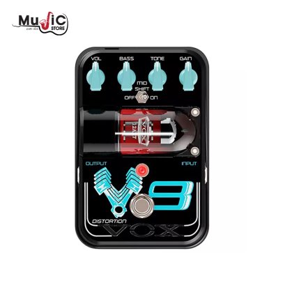 Vox V8 Distortion As befits the name "V-type 8-cylinder," this is a high-gain distortion unit that boasts an awe-inspiring tone. In addition to distortion sounds that are ideal for heavy riffs or soloing, you can also obtain cutting high-gain lead sounds. It provides a mid-shift switch that lets you change the band where the mid-range peaks. Turning this off gives you a broad range with an emphasized attack. Turning it on will shift the band to be more suitable for lead playing.